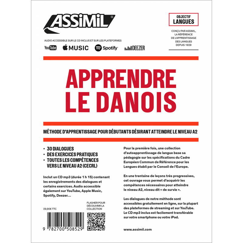 Apprendre le Danois. Raggiungi il livello A2 con il corso per principianti di danese su base francese: 30 dialoghi, grammatica, esercizi e audio Mp3.