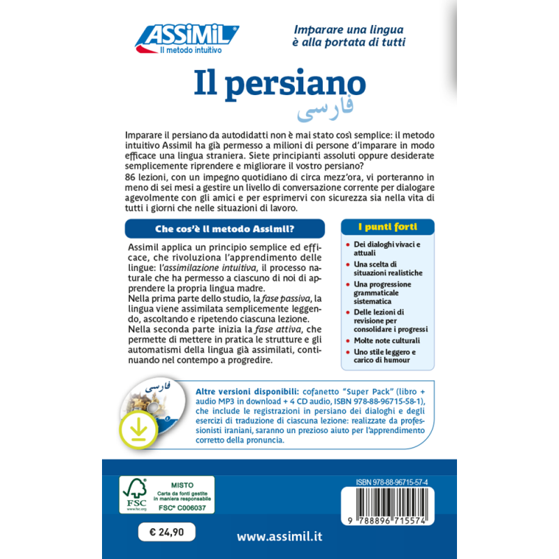 Se stai cercando un corso per imparare la lingua persiana in maniera naturale ed efficace, il Metodo Intuitivo Assimil risulterà semplice e progressivo e lo studio verrà reso più gradevole dalle notizie culturali sul Paese.