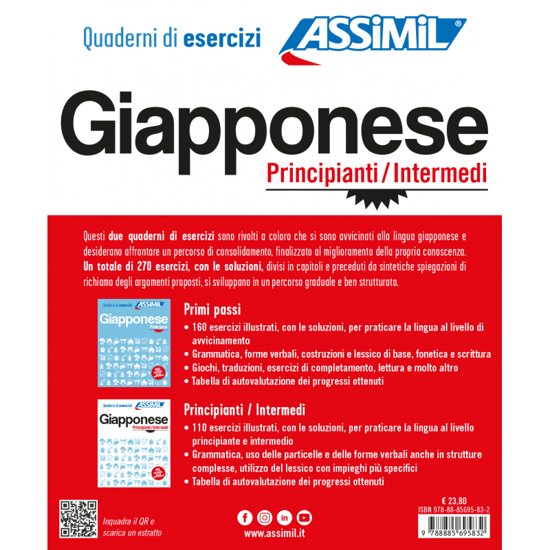 Abbinamento di due quaderni di esercizi di GIAPPONESE: Livello Primi Passi + Livello Principianti/Intermedi. Comprende 270 esercizi con le soluzioni.