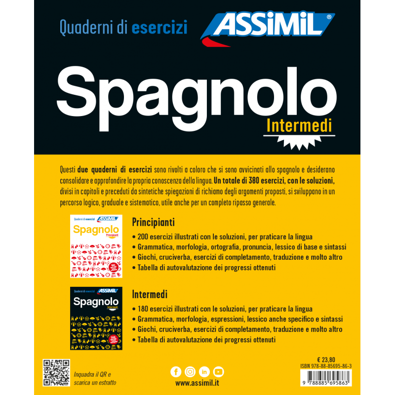 Abbinamento di due quaderni di esercizi di SPAGNOLO: 1 Livello PrincipiantI e 1 Livello Intermedi. Comprende 380 esercizi con le soluzioni.