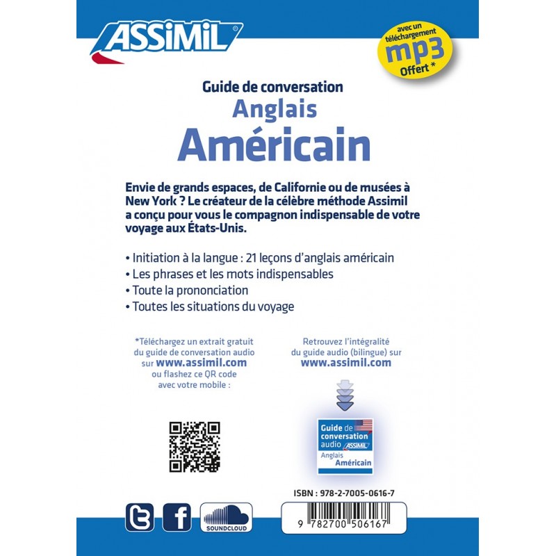 Progetti un viaggio in America? Parti con la guida di conversazione di inglese americano in francese: grammatica, frasi utili, lessico di viaggio.