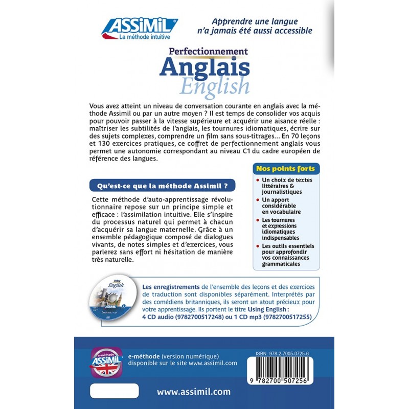 Se stai cercando un corso su base francese semplice ed efficace per migliorare il livello della lingua inglese, scegli Perfectionnement Anglais di Assimil.