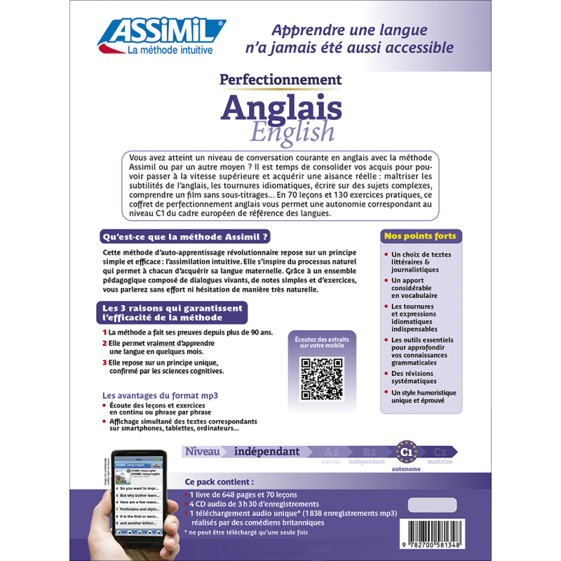 Se stai cercando un corso su base francese semplice ed efficace per migliorare il livello della lingua inglese, scegli Perfectionnement Anglais di Assimil.