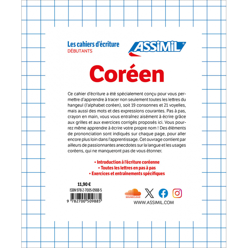 Coréen. Cahier d'écriture. L'alphabet et vos premiers mots.
