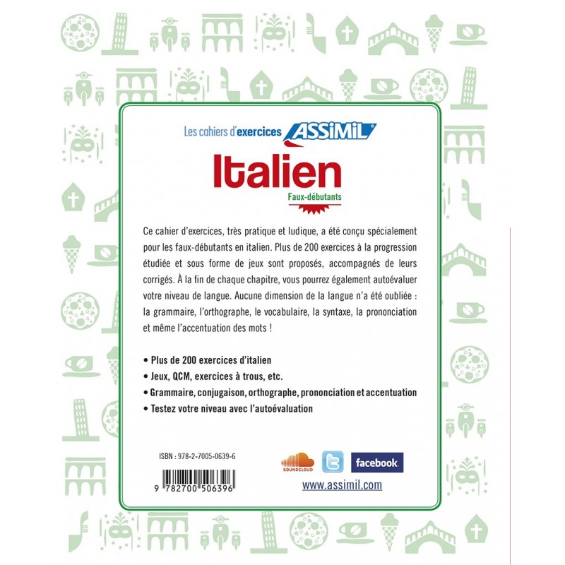 Cahier d’exercices Italien faux-débutants. 200 esercizi di italiano con soluzioni per principianti: grammatica, fonetica, lessico, sintassi e divertimento.