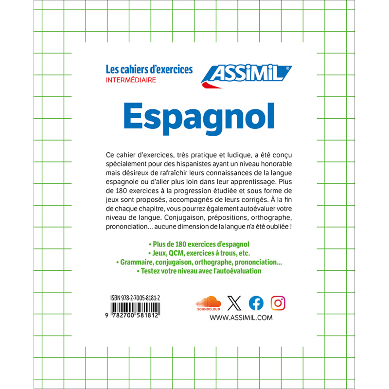 Il quaderno di esercizi Espagnol - Intermédiaire è il manuale utile ed efficace che ti aiuterà a migliorare il tuo livello di spagnolo.