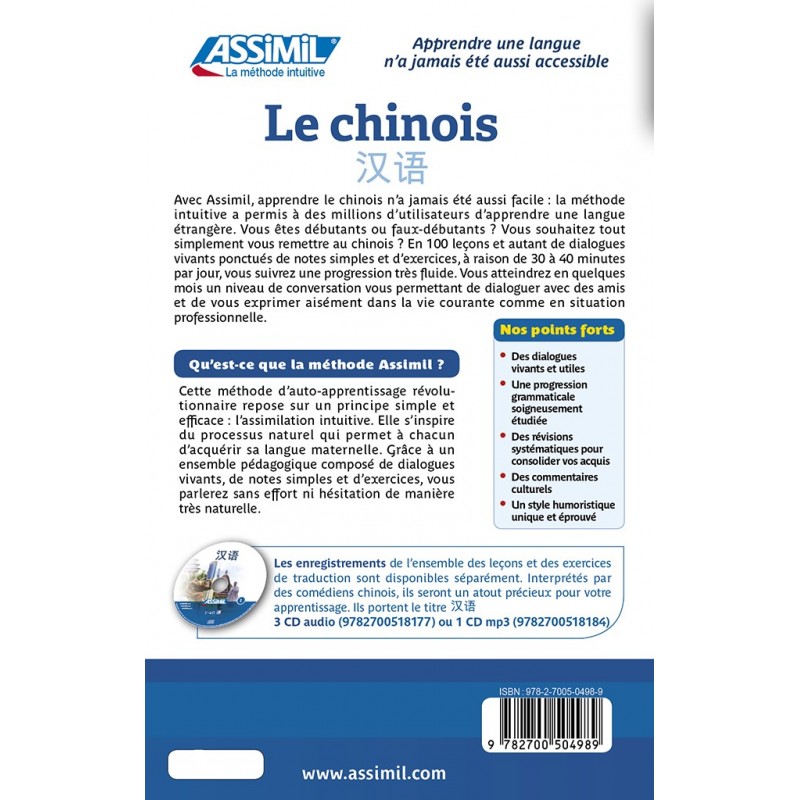 Grazie ad Assimil imparare a parlare e a scrivere in cinese mandarino da autodidatta è alla portata di tutti.
