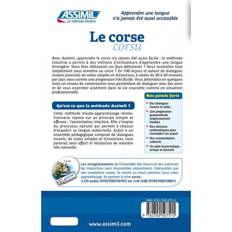 Se stai cercando un corso su base francese per imparare la lingua corsa in maniera rapida ed efficace, il Metodo Intuitivo Assimil è quello di cui hai bisogno.