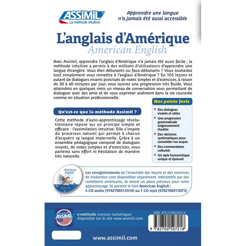 Imparare l’inglese americano scritto e parlato con il Metodo Intuitivo Assimil ti permetterà di parlare e comprendere senza sforzo i parlanti madrelingua o a livello internazionale, sia in ambito quotidiano che lavorativo.