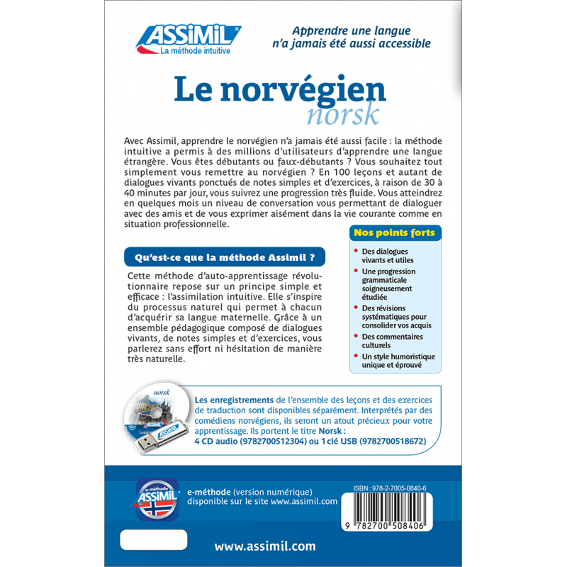 Se stai cercando un corso su base francese per imparare il norvegese in maniera rapida ed efficace, il Metodo Intuitivo Assimil è ciò di cui hai bisogno.