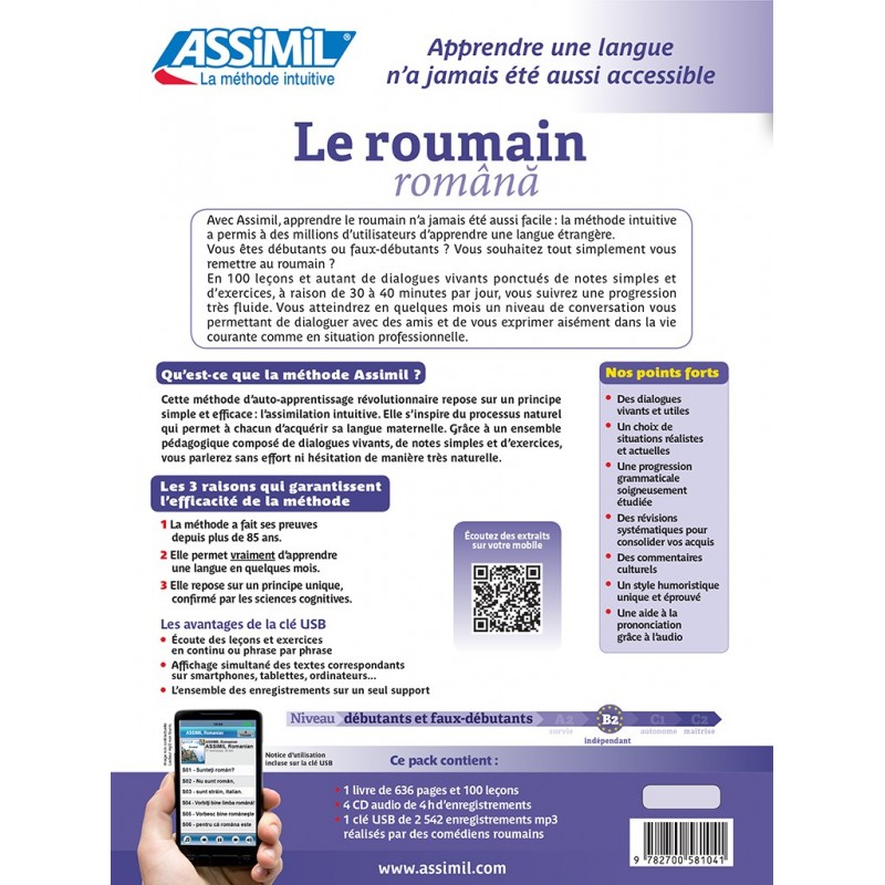 Apprends le Roumain avec Assimil ! Con il corso su base francese con audio Mp3 Assimil raggiungerai, autonomamente e in pochi mesi, il livello B2 ben consolidato della lingua romena.