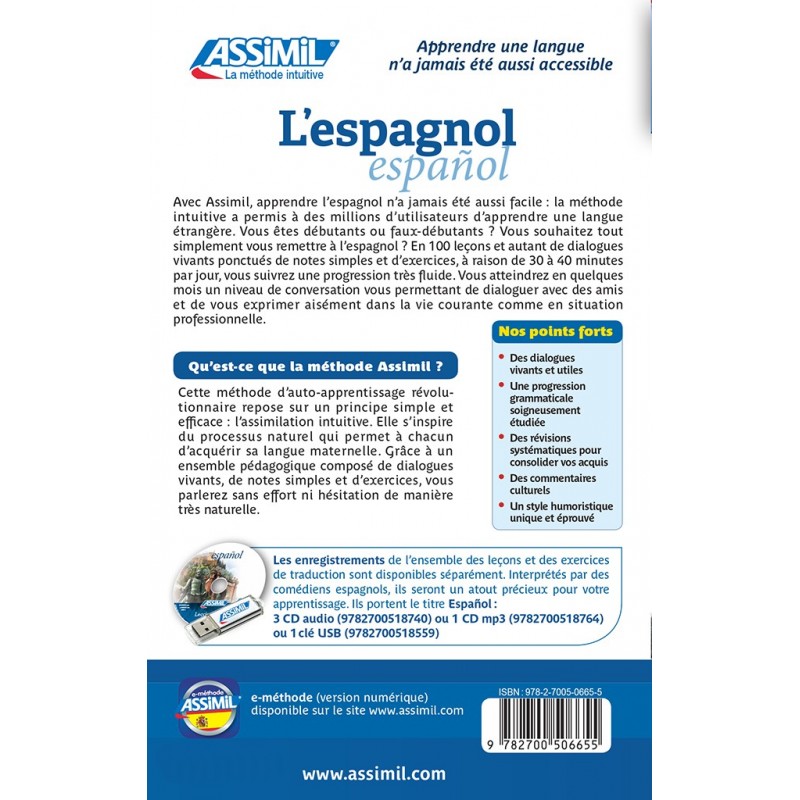 Apprendre l’espagnol c’est facile avec Assimil ! Scegli il corso di spagnolo su base francese per autodidatti e principianti di Assimil. Raggiungerai un livello ben consolidato e una padronanza perfetta della lingua.