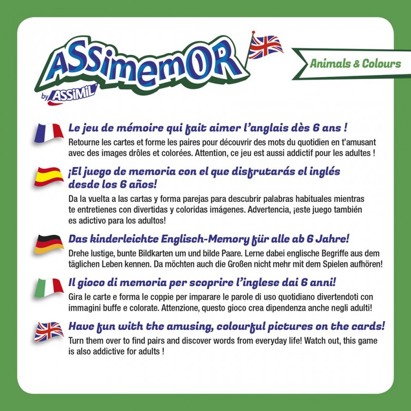 Le mie prime parole in inglese. Regala il gioco memory educativo Assimil sull'Inglese per bambini dai 4 ai… 99 anni! Impara giocando i nomi di animali e colori