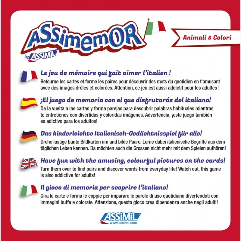 Le mie prime parole in Italiano – Gioco memory educativo Assimil per stimolare nei bambini stranieri l’apprendimento intuitivo dell'italiano. Imparare giocando!