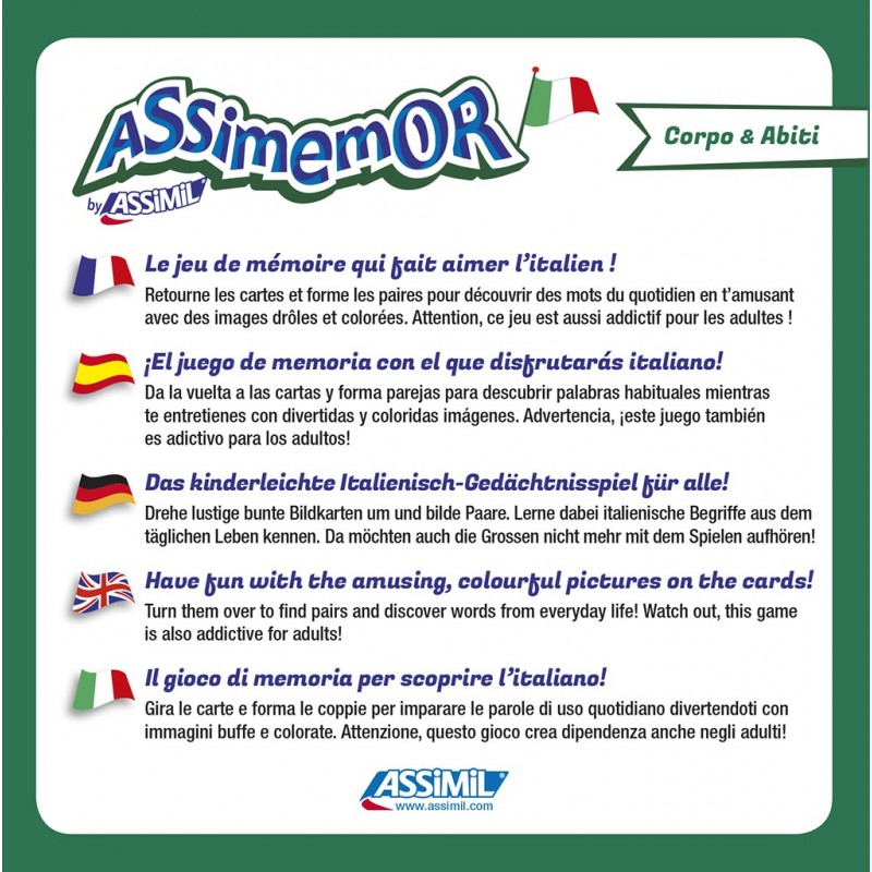 Le mie prime parole in Italiano – Gioco memory educativo Assimil per insegnare in modo intuitivo e stimolante l'italiano ai bambini stranieri. Impara giocando!
