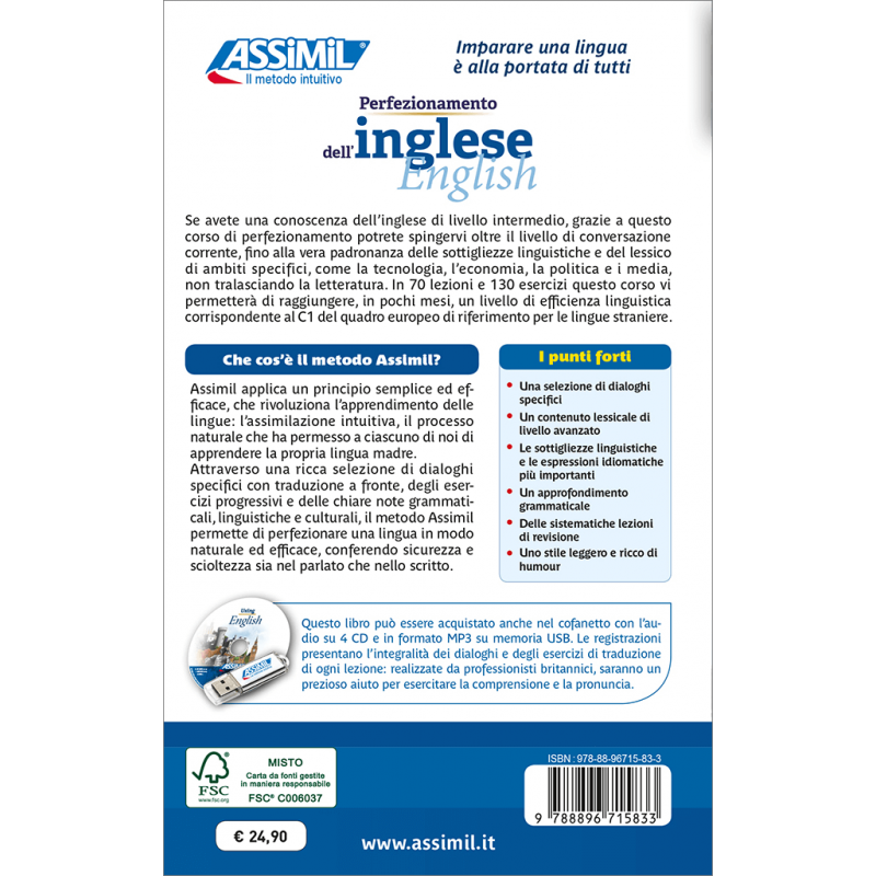 Con il corso avanzato Assimil puoi perfezionare il tuo livello di inglese, approfondendo gli aspetti di sintassi, espressioni idiomatiche, sottigliezze linguistiche e lessico.