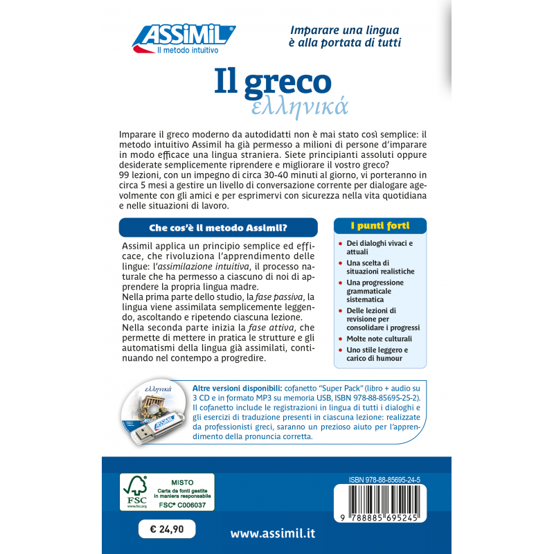 Imparare il greco parlato e scritto con il Metodo Intuitivo Assimil ti permetterà di parlare e comprendere i parlanti madrelingua in maniera naturale ed efficace.