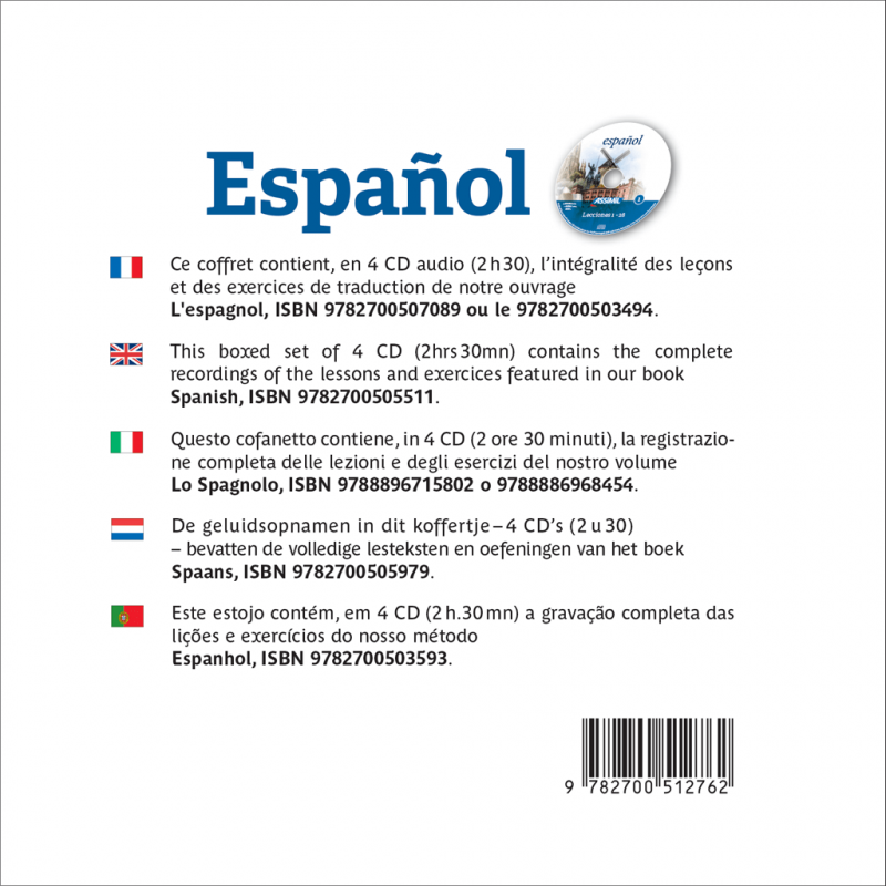 Solo 3 CD audio abbinati al volume Lo Spagnolo - Collana Senza Sforzo (ISBN: 9788885695467 - edizione 2021) e al volume L'Espagnol - Collection Sans Peine (ISBN: 9782700506655).