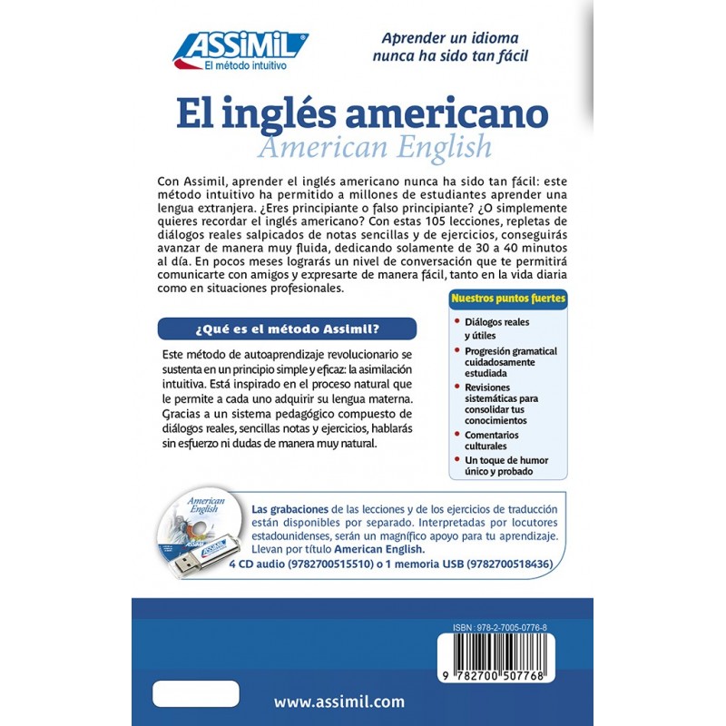 Imparare l’inglese americano scritto e parlato con il Metodo Assimil ti permetterà di parlare e comprendere senza sforzo i parlanti madrelingua o a livello internazionale, sia in ambito quotidiano che lavorativo.