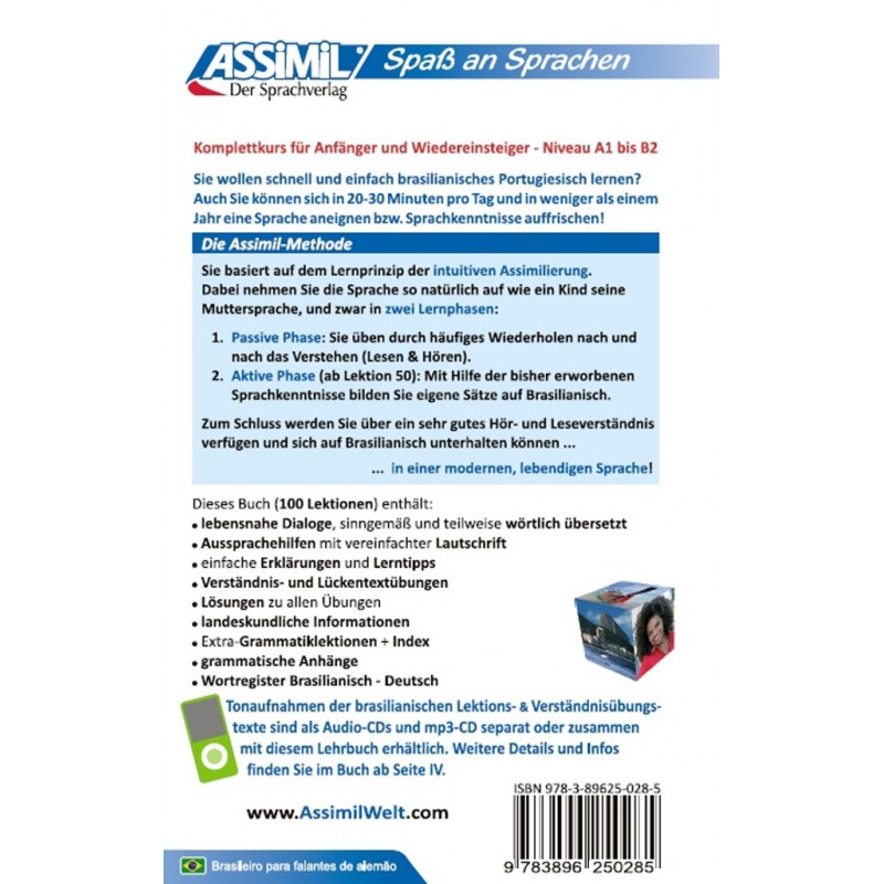 Imparare il portoghese brasiliano scritto e parlato con il Metodo Intuitivo Assimil ti permetterà di parlare e comprendere senza sforzo i parlanti madrelingua o a livello internazionale, sia in ambito quotidiano che lavorativo.