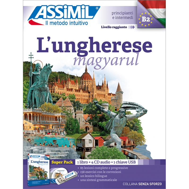 Con Assimil raggiungerai, autonomamente e in pochi mesi, il livello B2 ben consolidato della lingua ungherese grazie a semplici lezioni quotidiane con incisioni audio.